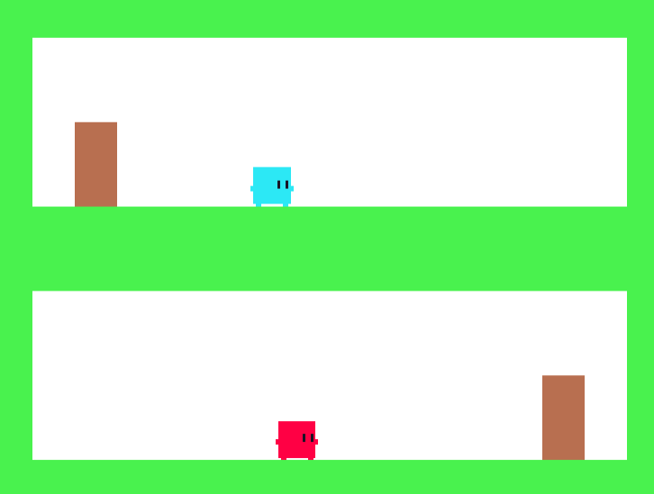 This game is a platformer. arrow keys to move and jump. You are a red and blue box trying to get to the end of this game, while dodging spikes.